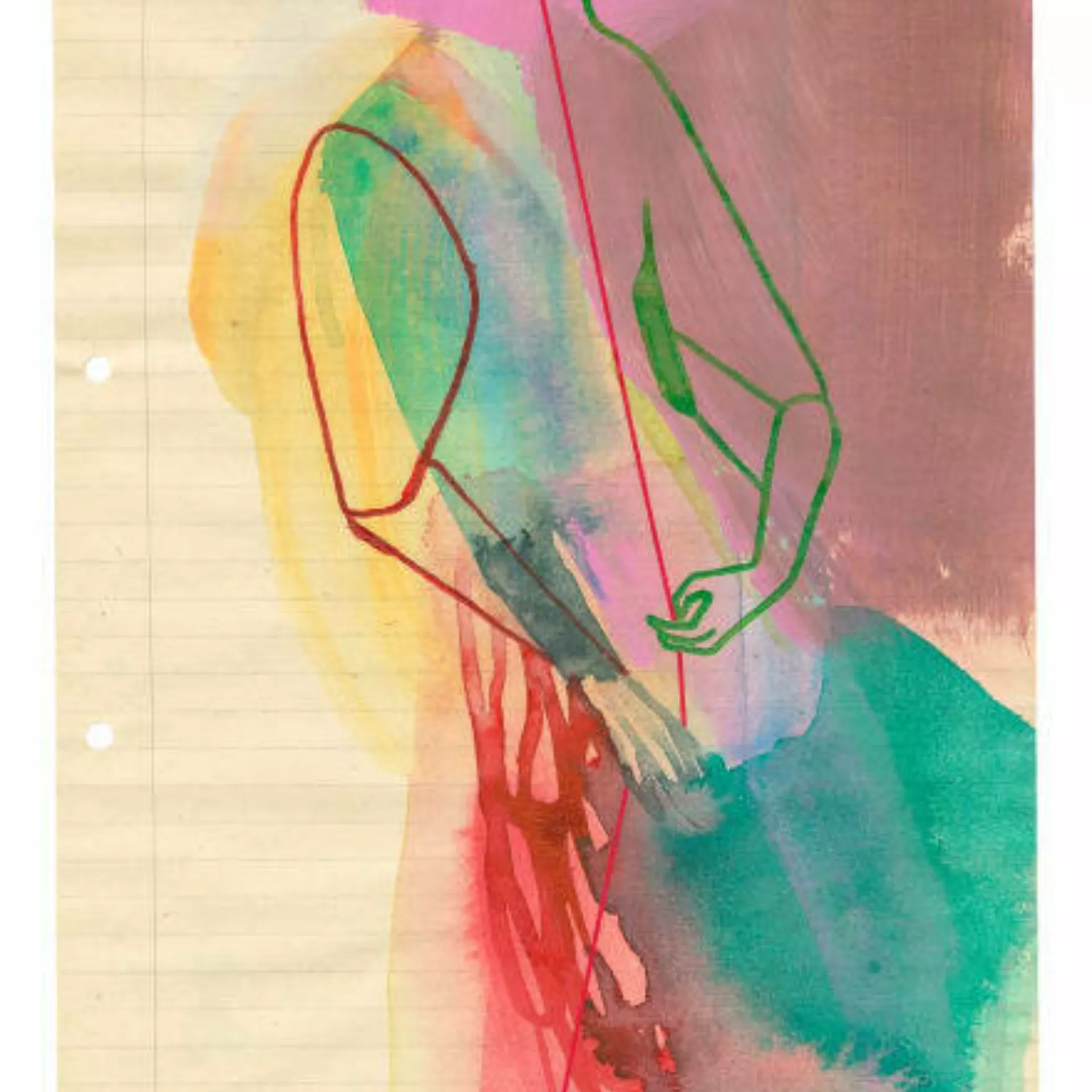 Ink, watercolour and crayon on found paper
