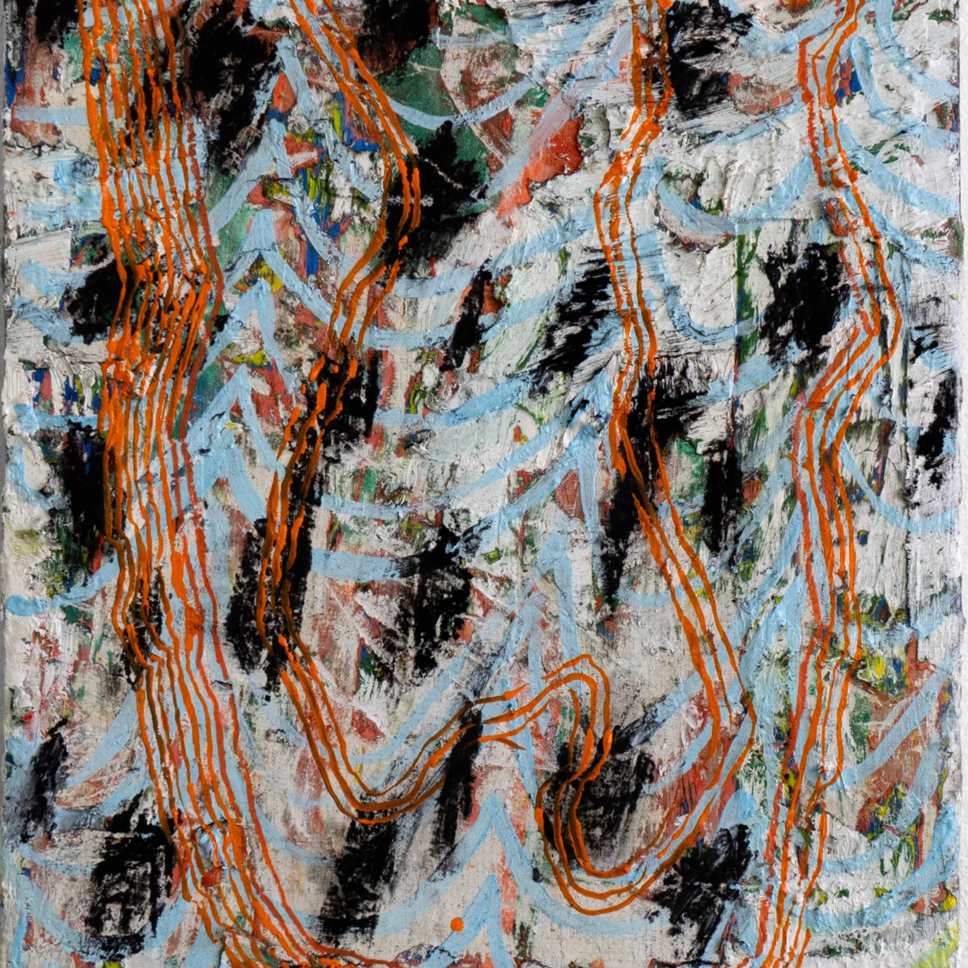 Oil paint, soft pastel and charcoal on canvas