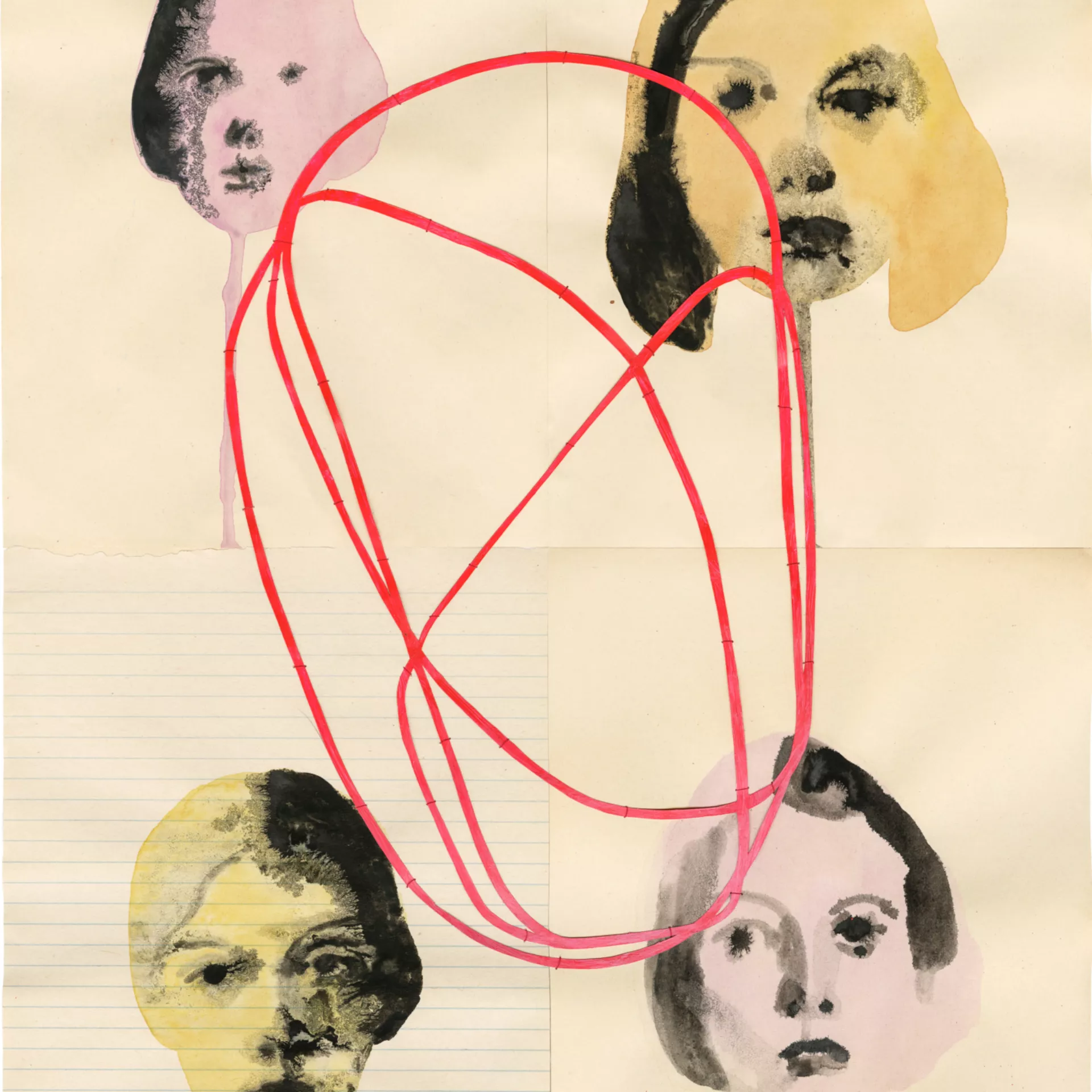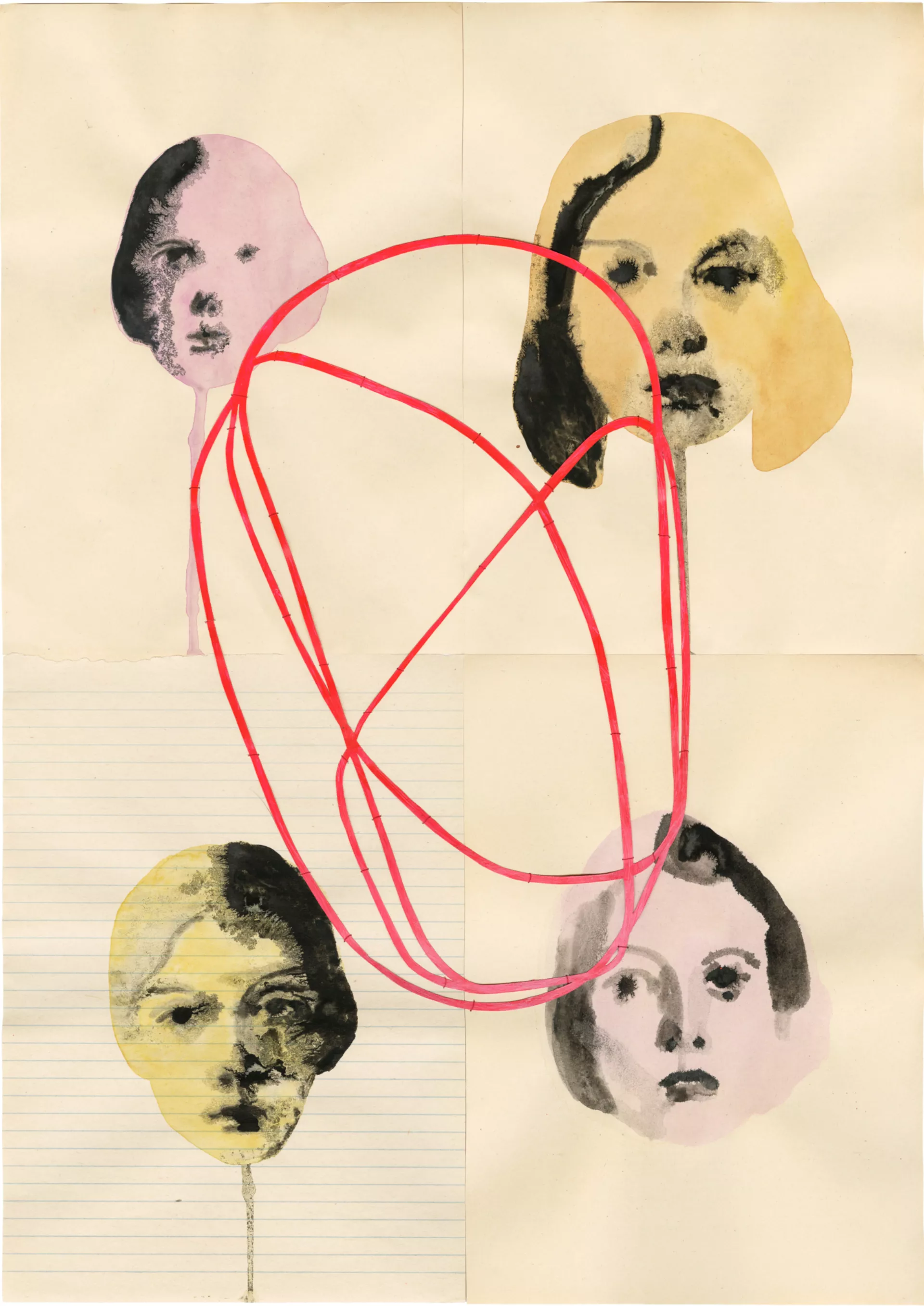 Ink and thread on found paper