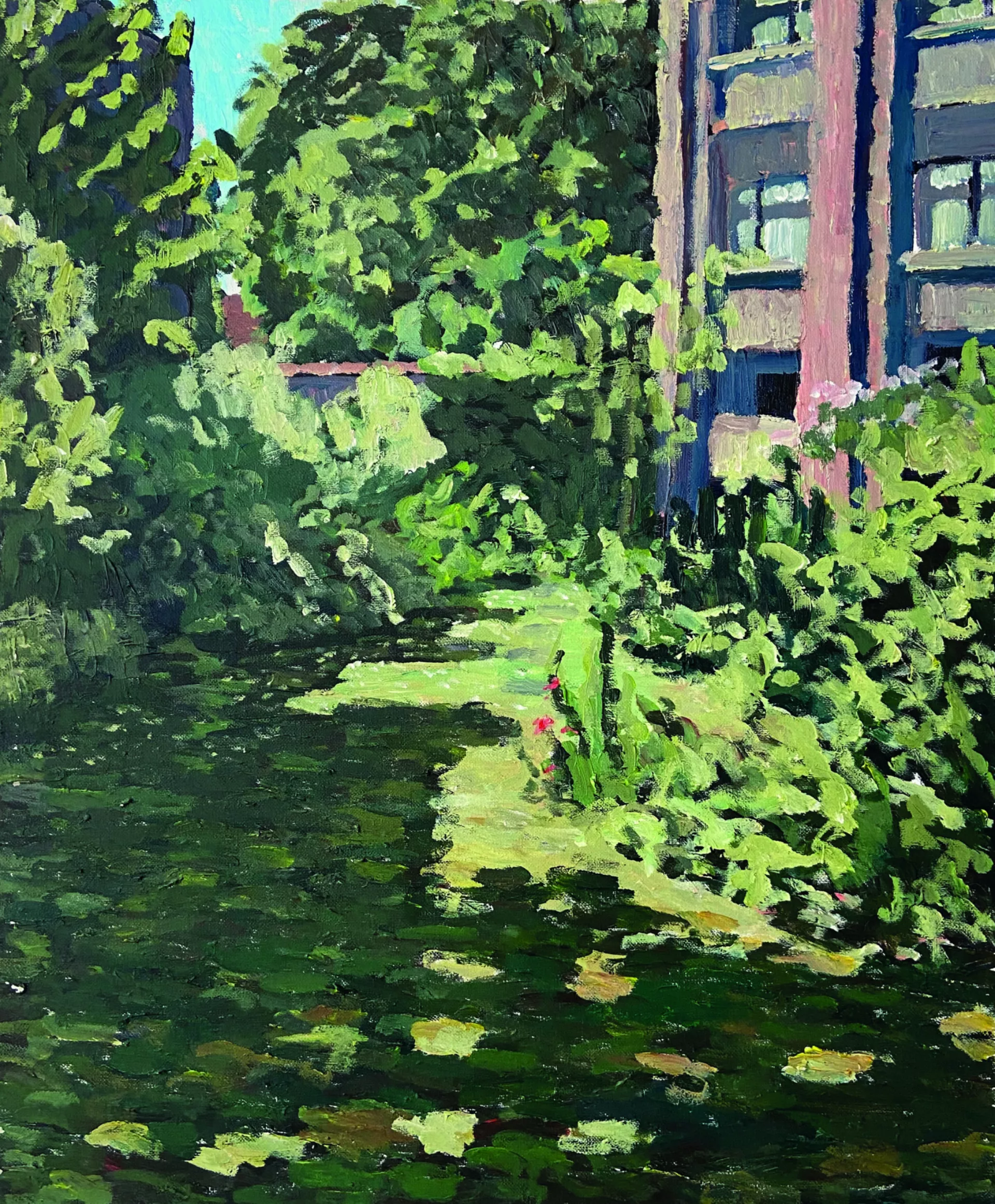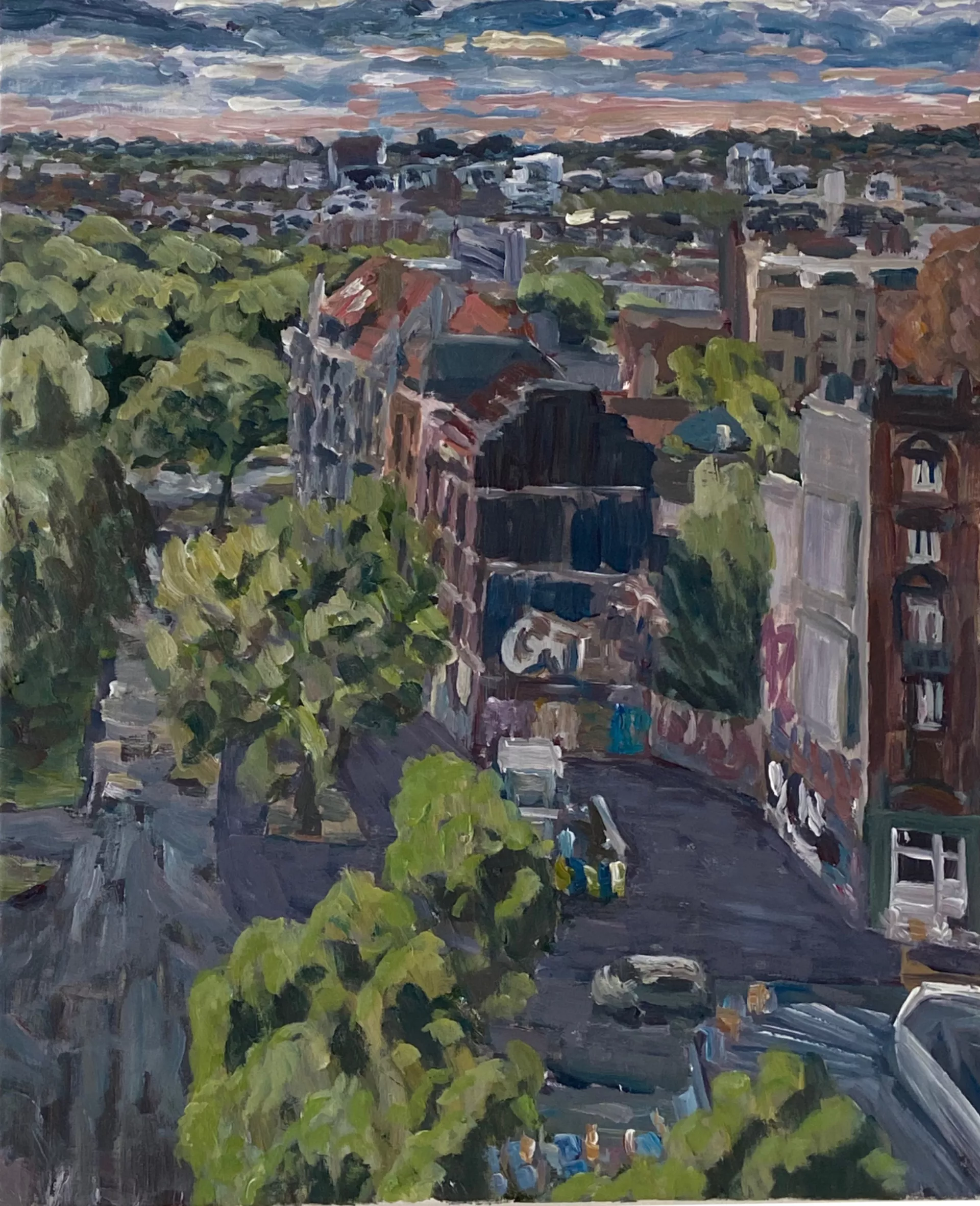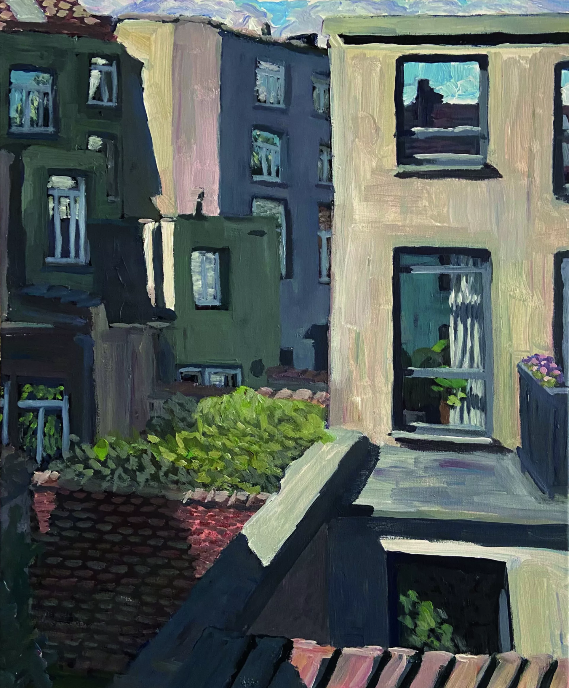 For painter Robin Leforestier, working on location is essential. It allows him to truly experience a place, turning the act of painting into a kind of performance—a direct interaction with the surroundings. His works are tangible traces of those lived moments. In Brussels, where urban structures and natural forms constantly collide, he finds inspiration. The sharp lines of the erratic architecture contrast beautifully with the organic shapes of nature. This tension becomes a play of perspective and light, continuously challenging him to shift his way of observing and painting.