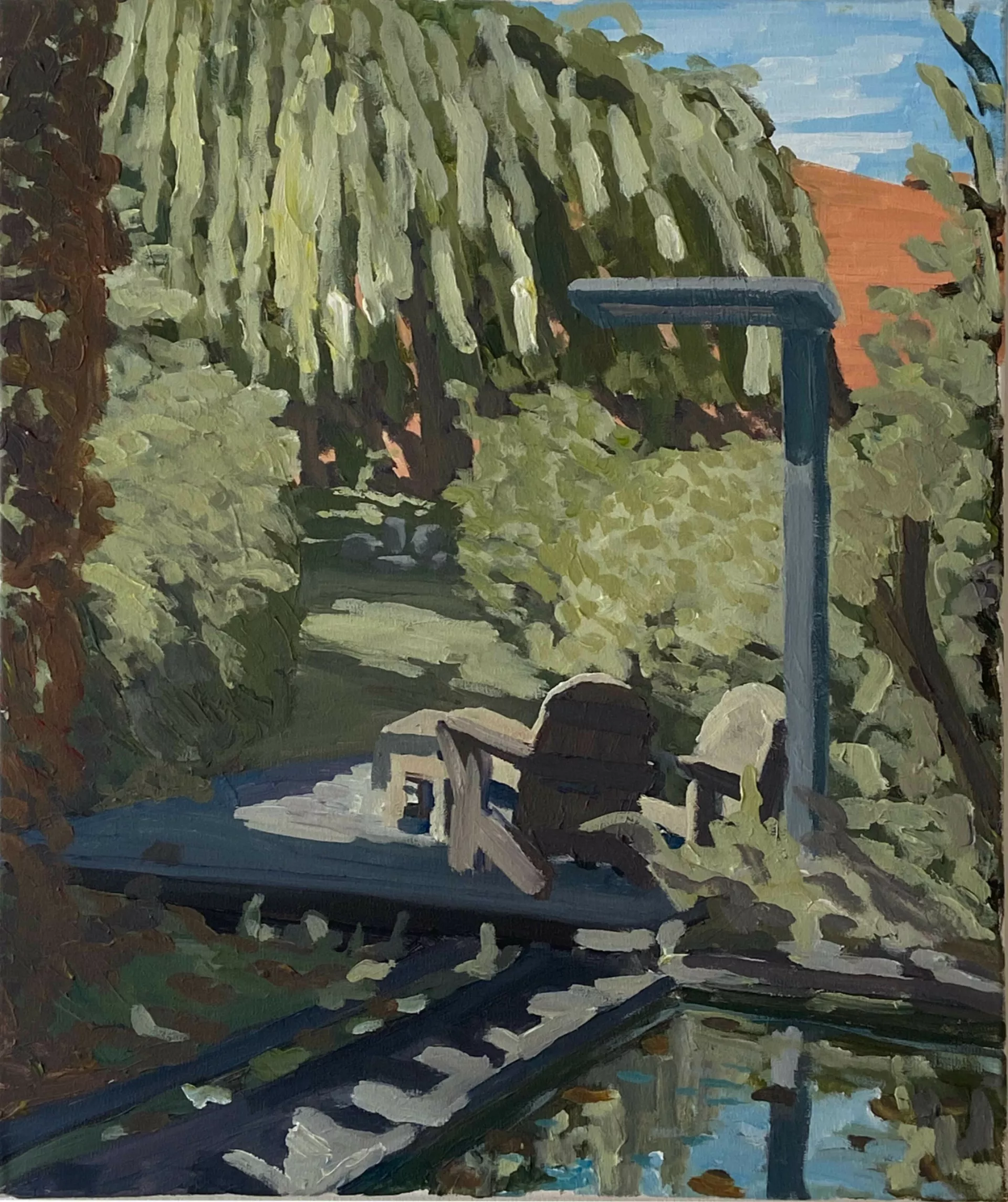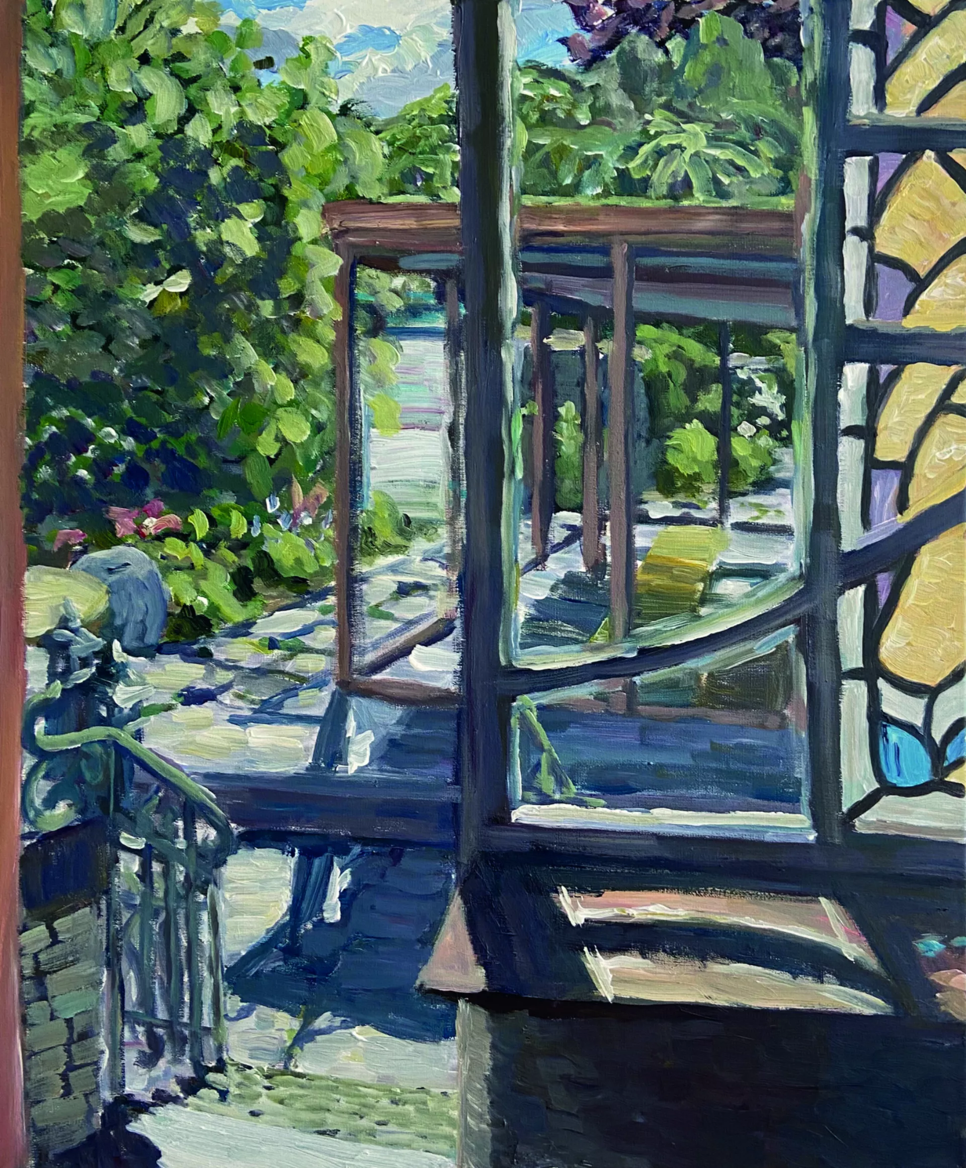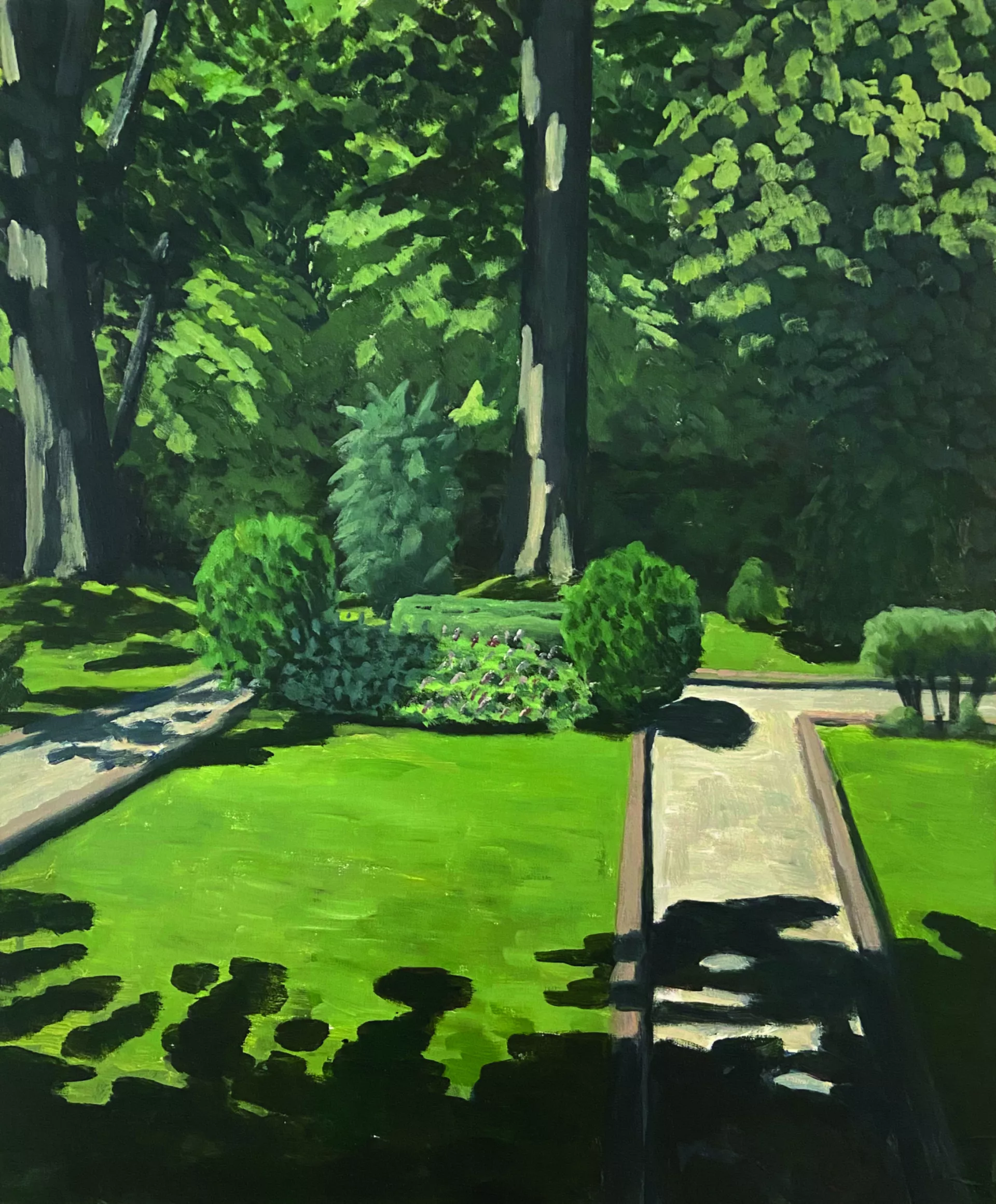 For painter Robin Leforestier, working on location is essential. It allows him to truly experience a place, turning the act of painting into a kind of performance—a direct interaction with the surroundings. His works are tangible traces of those lived moments. In Brussels, where urban structures and natural forms constantly collide, he finds inspiration. The sharp lines of the erratic architecture contrast beautifully with the organic shapes of nature. This tension becomes a play of perspective and light, continuously challenging him to shift his way of observing and painting.