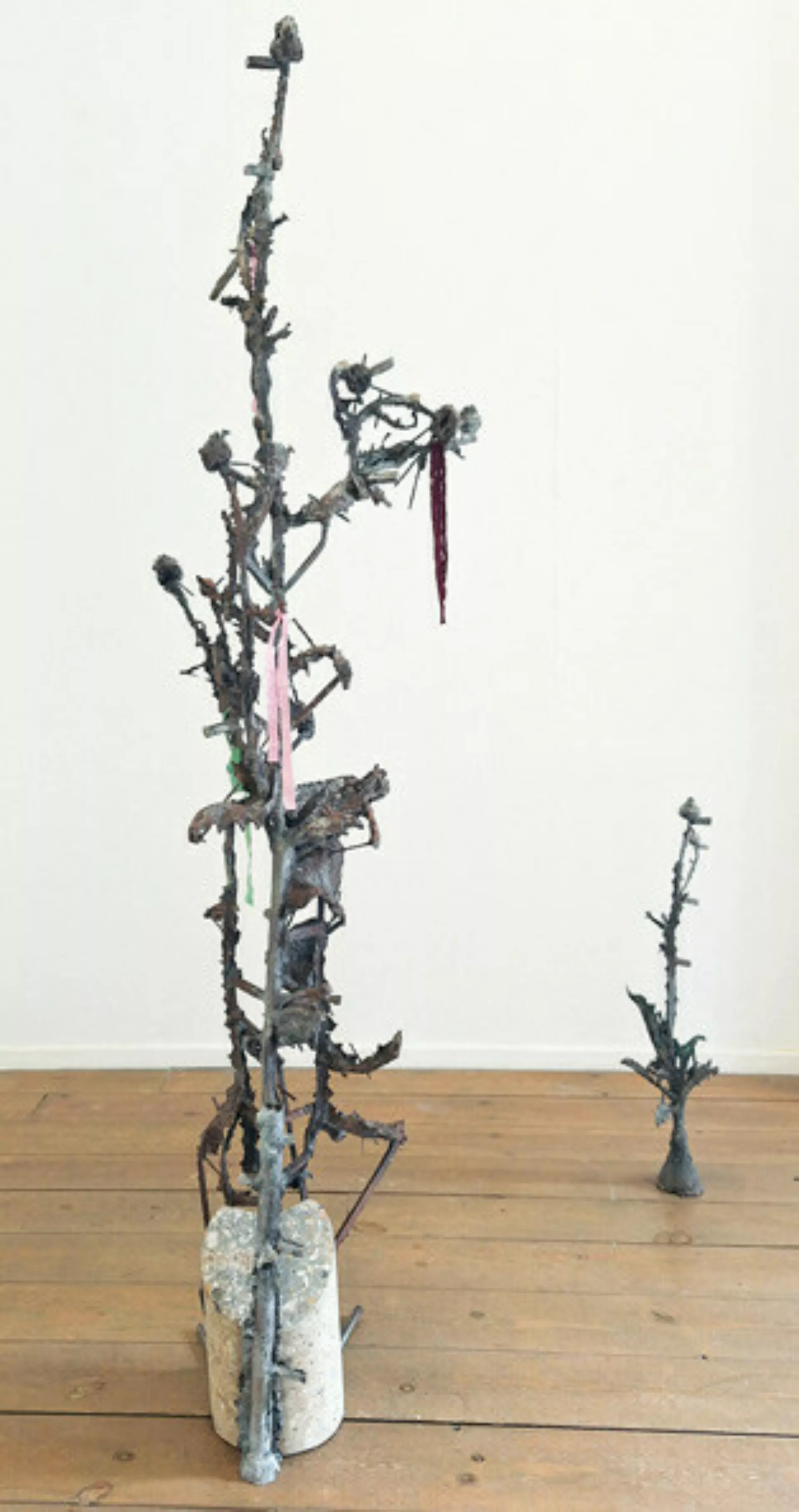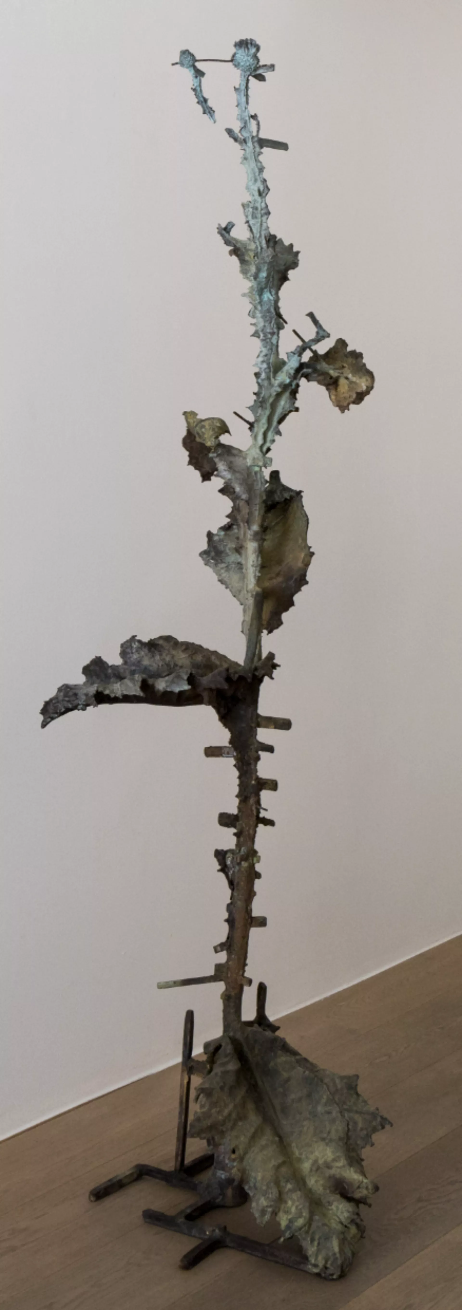 That is why the thistle plays a pivotal role in this solo exhibition. Positioned at the heart of the gallery, Coolen presents this weed boldly to the viewer. Once spit out by Christian tradition for its associations with sin and earthly suffering, the plant is preserved by the artist—cast in bronze. Through this material choice, she emphasizes its strength, resilience, and beauty.