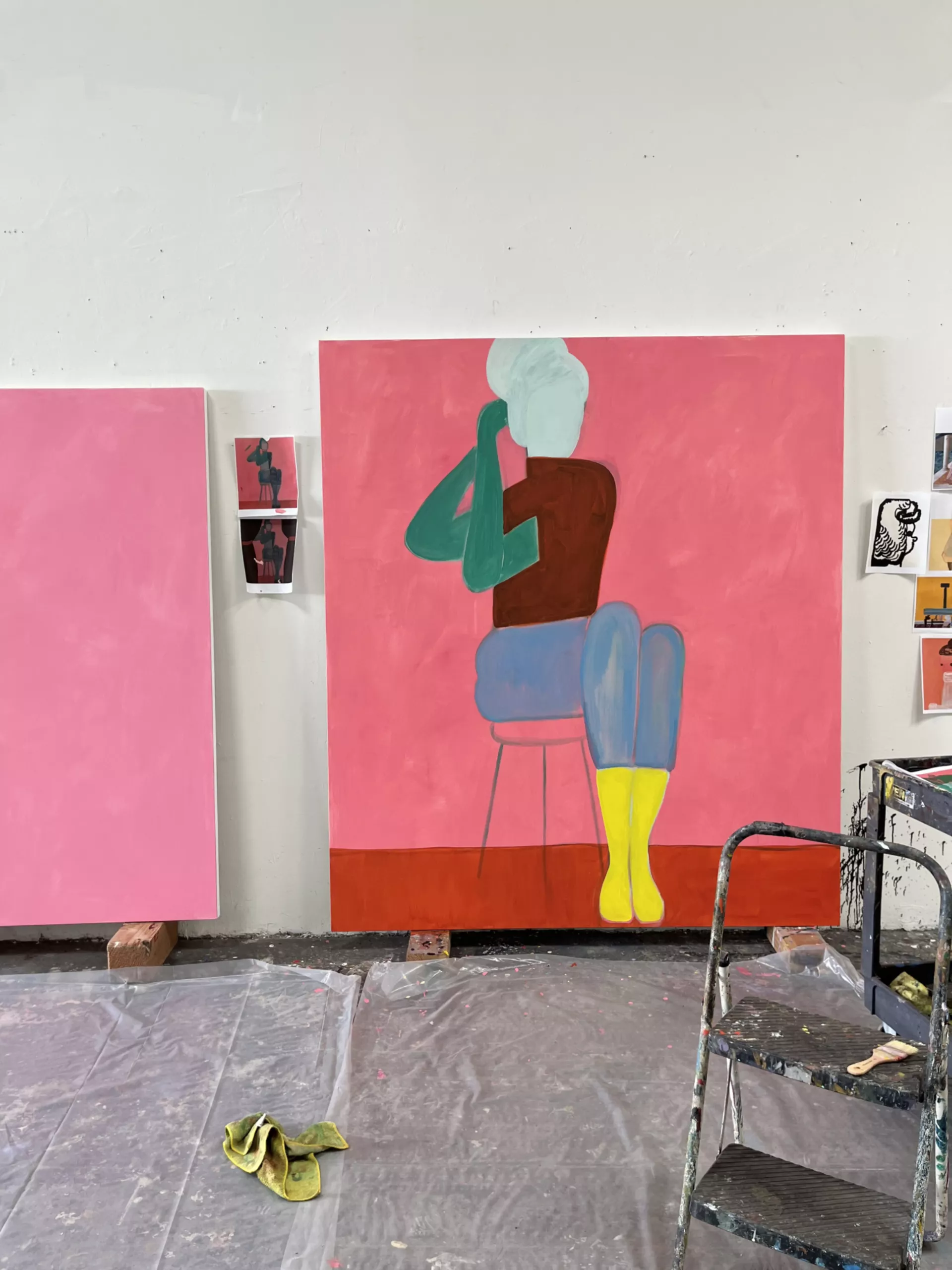 Working in full immersion every day in such a monastic environment transported me far from my everyday life in an unfamiliar city. I was able to create a body of work that really pushed me forward. Taking all of my vernacular and scaling up the work was a new challenge that felt remarkably natural, and I enjoyed the deep concentration required for layering colors and bringing my women to life.